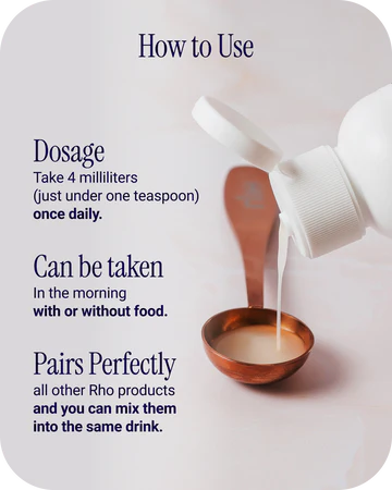 For optimal results, we suggest taking Rho NAD+ in the morning to fuel your day with sustained energy. The recommended daily dose is 4ml, equivalent to just under one teaspoon. You have the flexibility to take it with or without food, directly from the teaspoon, or mixed into any beverage of your choice. You can combine Rho NAD+ with other Rho products in the same drink for added convenience.